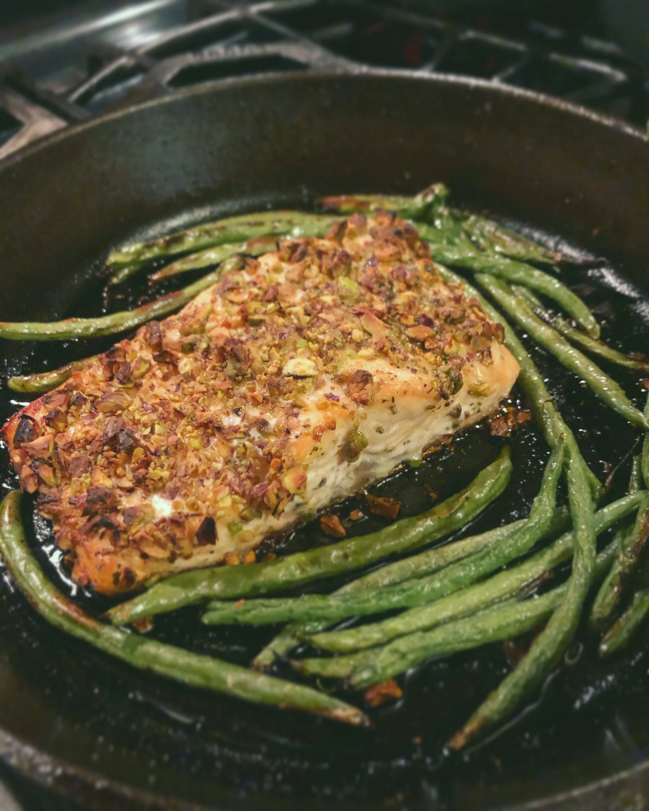 My love for pistachios & salmon come together in this chefs kiss dish.